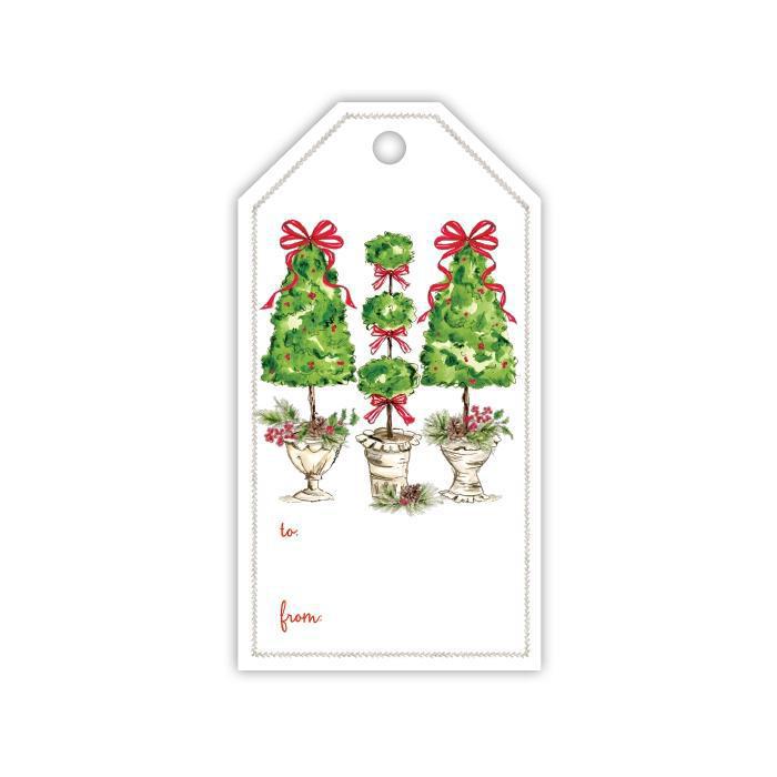 Featuring three beautifully illustrated holiday topiaries adorned with red bows, these elegant tags bring a timeless, hand-painted charm to your Christmas wrapping.