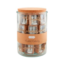 Keep the spirit of Christmas close with the Pocket Nativity. This 24-piece assortment features pocket-sized, hand-painted ceramic Holy Family figures, each beautifully boxed and tied with twine for an artisanal touch. Small enough to carry in a bag, keep on a desk, or tuck into a stocking, this Nativity serves as a daily reminder that Jesus is the reason for the season. Perfect for gifting, sharing with loved ones, or adding to Christmas favor bags, these mini keepsakes combine faith, beauty, and heartfelt meaning.