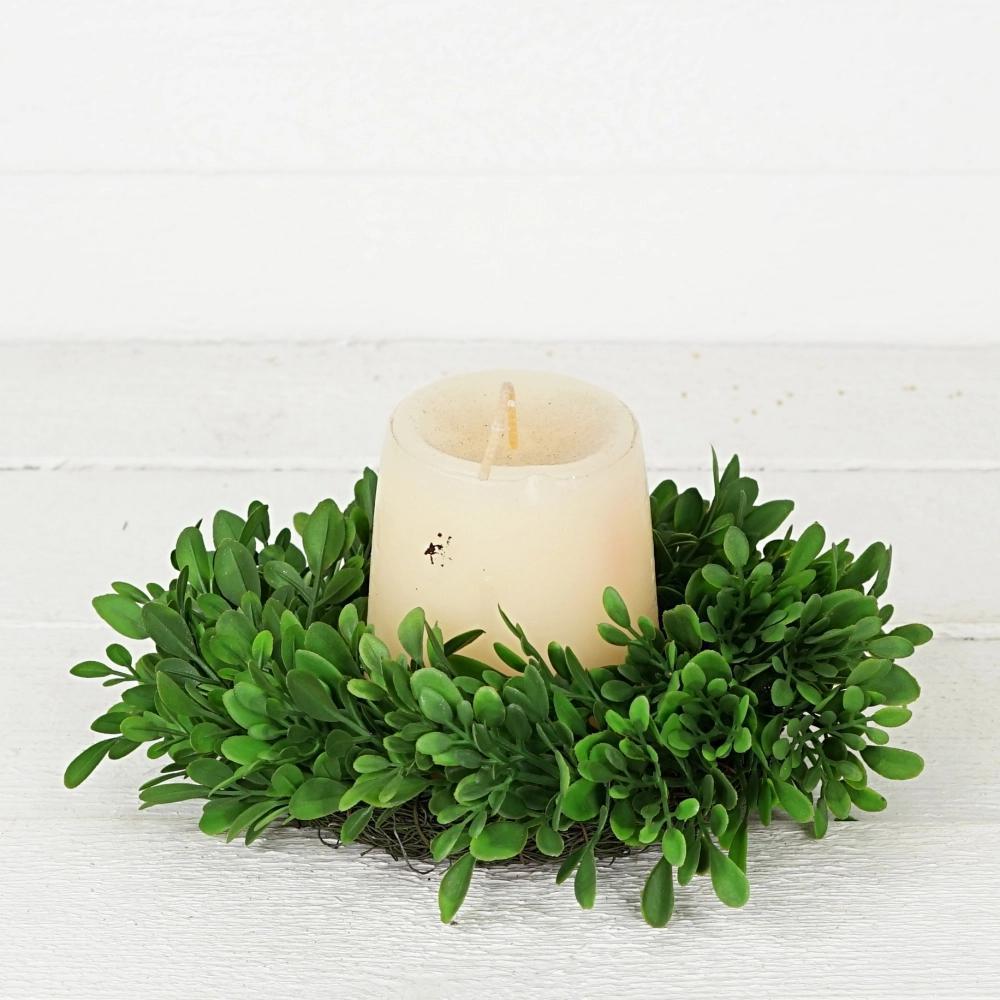 Bring natural beauty indoors with the 9in (3.5) Wreath – Evergreen Boxwood. This lush faux wreath features lifelike boxwood leaves in rich shades of green, offering the perfect touch of freshness for your home décor. Designed for versatility, it can be displayed on a wall, layered on trays, or used as a candle ring centerpiece for a cozy, seasonal look.