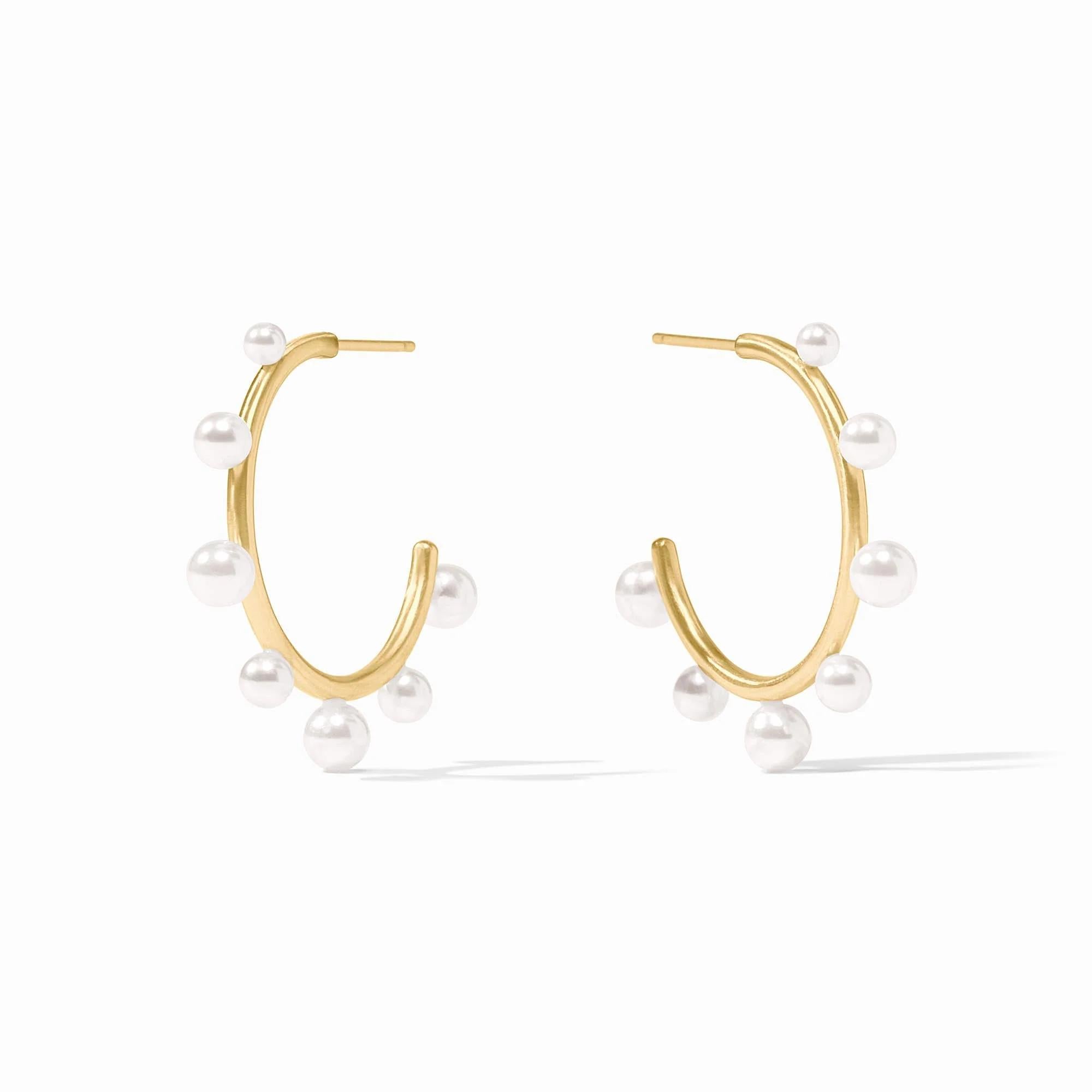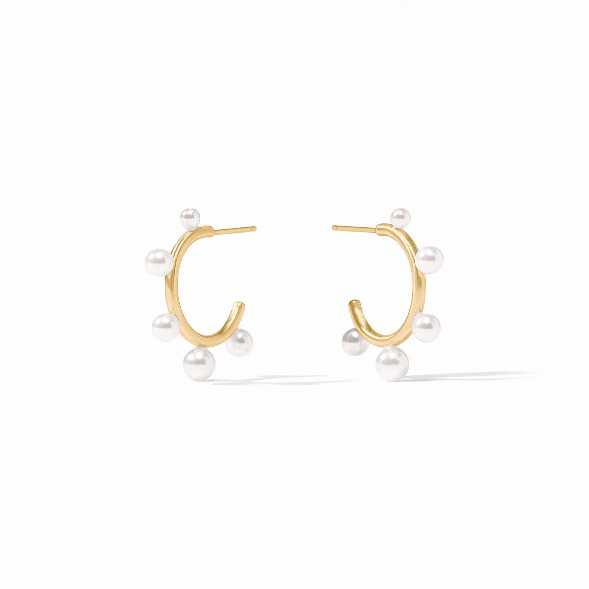 Feather-light, slender golden hoops studded with gumdrop-like gemstones in varying sizes for a wonderfully whimsical look.