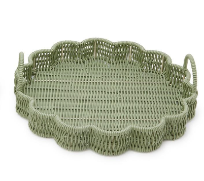 Wicker Scalloped Edge Green Round Serving Tray | Outdoor Entertaining – Lindale Floral Shop