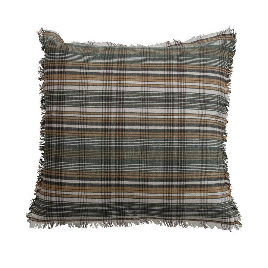 Woven Linen & Cotton Plaid Pillow | 20" Square Fringe Throw Pillow – Lindale Floral Shop