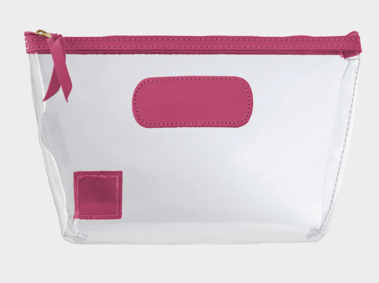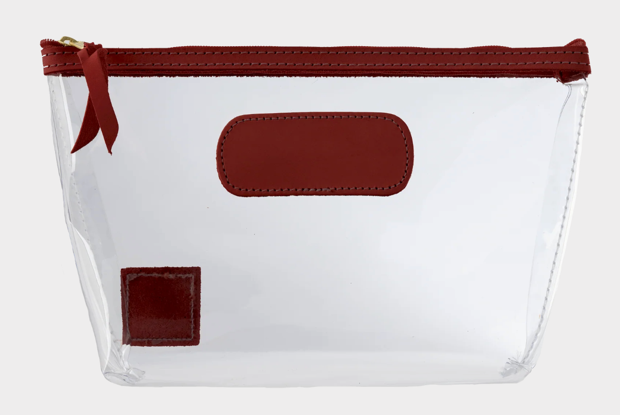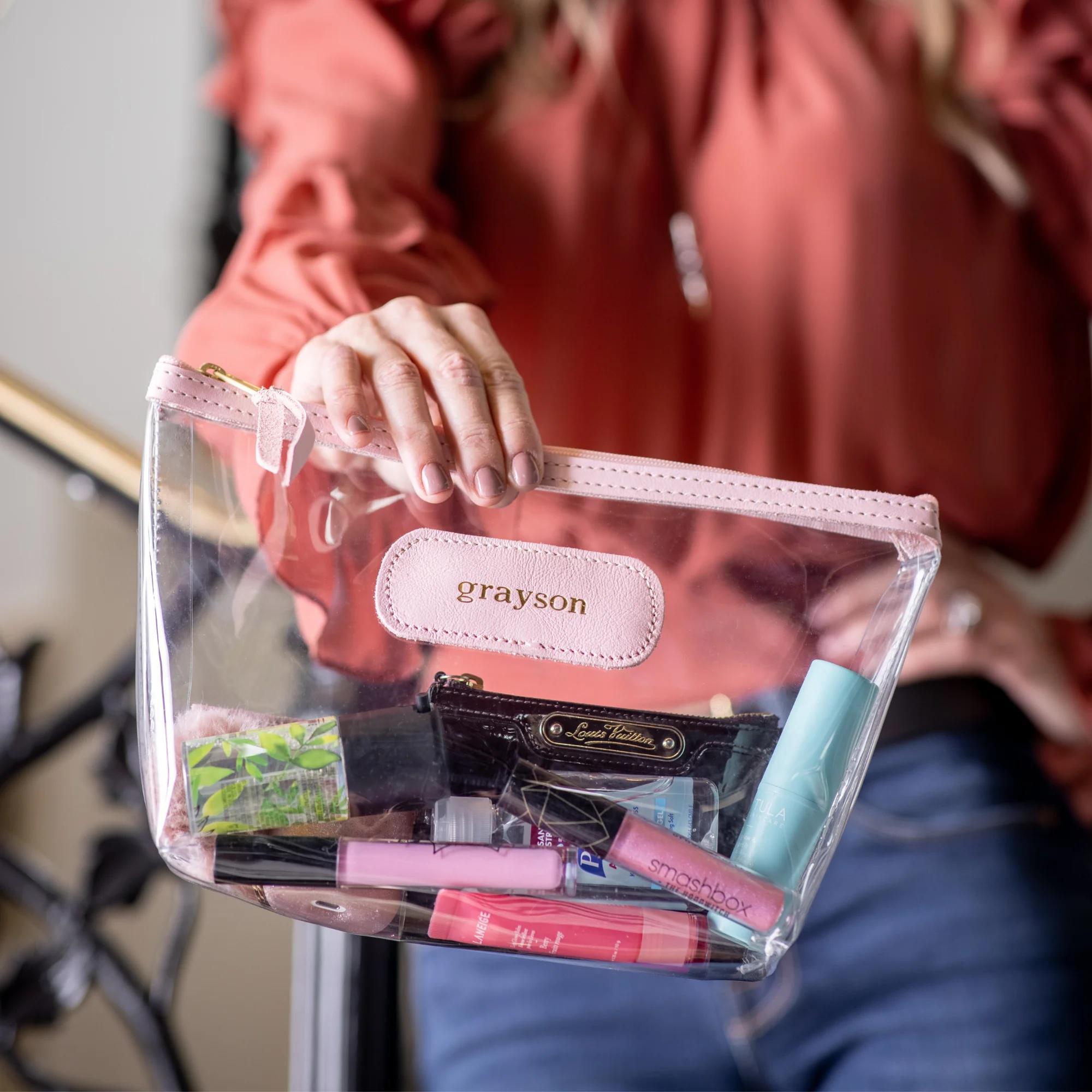 Having a hard time locating those small items in that black hole you call a purse? Well, struggle no more! Our Clear Grande in clear plastic is here to help easily identify your products, especially when you travel! Great gift idea as nobody can have too many. Also available in Coated Canvas. We recommend personalizing with Gold or Silver foil on all colored leather items.