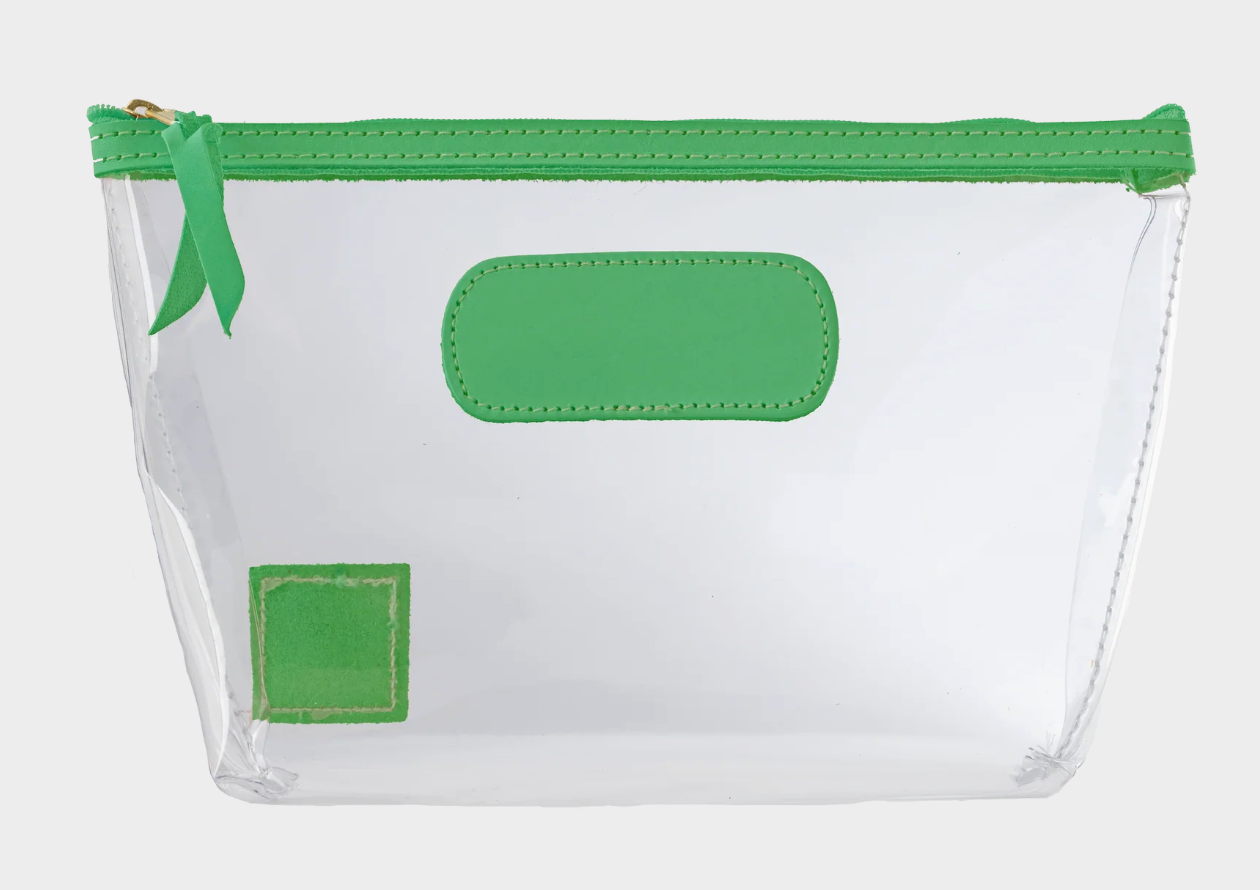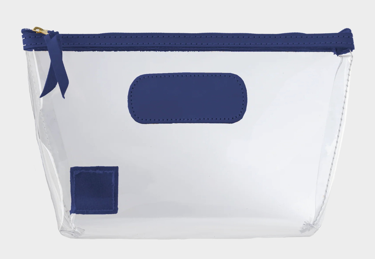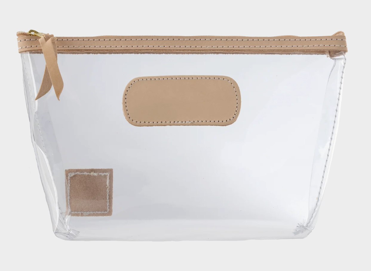 Having a hard time locating those small items in that black hole you call a purse? Well, struggle no more! Our Clear Grande in clear plastic is here to help easily identify your products, especially when you travel! Great gift idea as nobody can have too many. Also available in Coated Canvas. We recommend personalizing with Gold or Silver foil on all colored leather items.