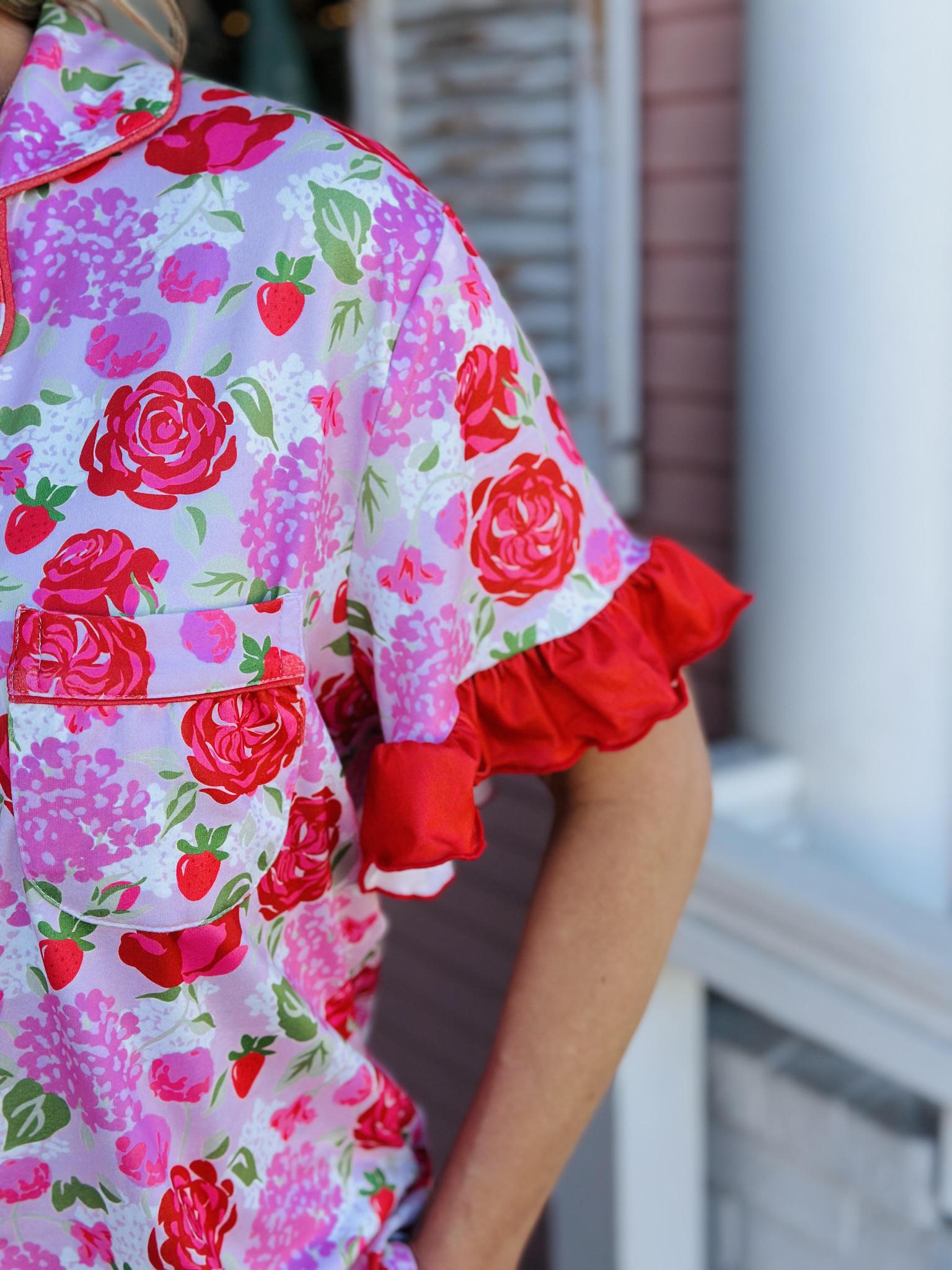 Rose Garden Pajama Pants Set | Floral Ruffle Trim Pajamas – Lindale Floral Shop
