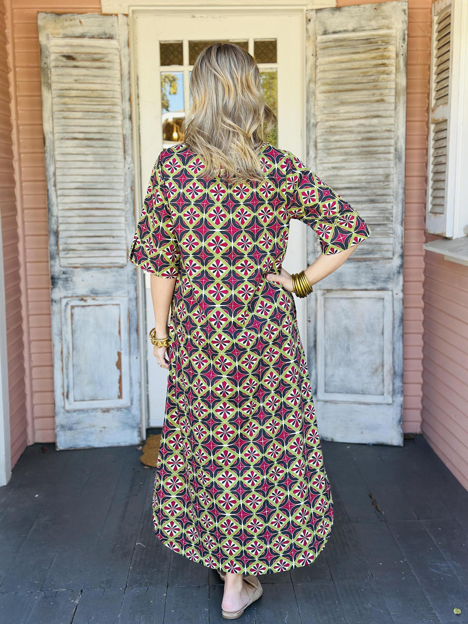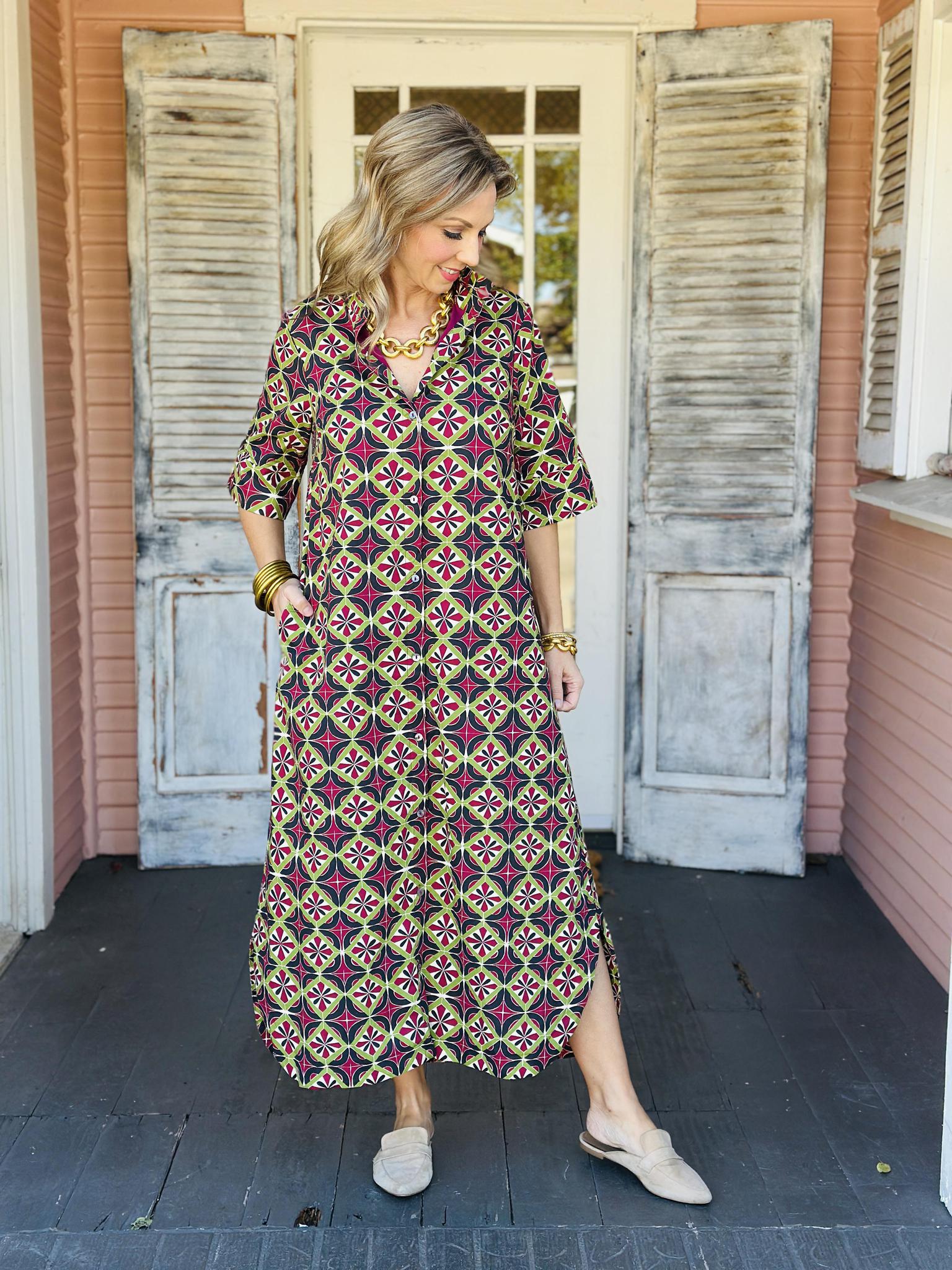 Amber Dress – Geometric Print Button-Front Midi Dress – Lindale Floral Shop
