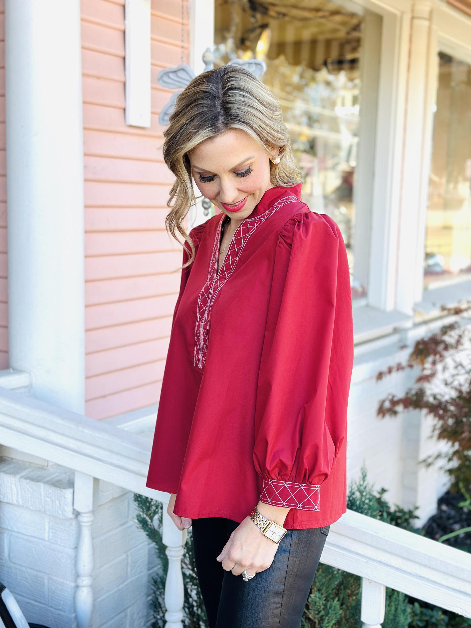 Holly Top – Rust Embroidered Puff Sleeve Blouse – Lindale Floral Shop