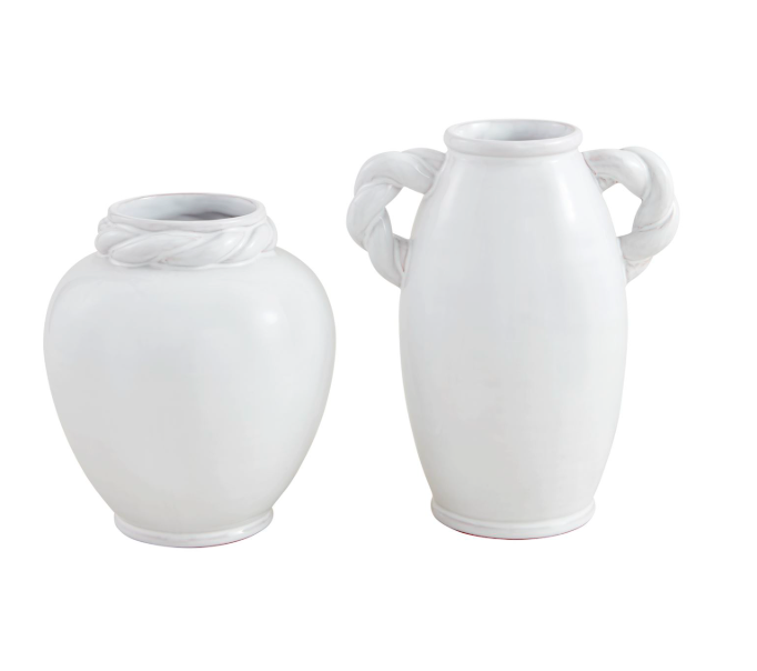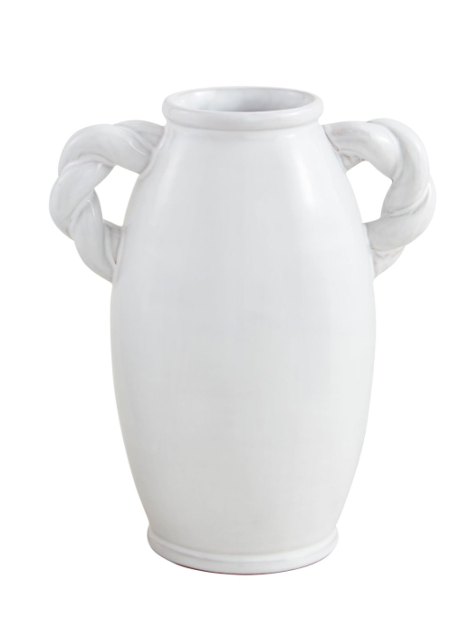 Glazed terracotta vase with twisted side handles.